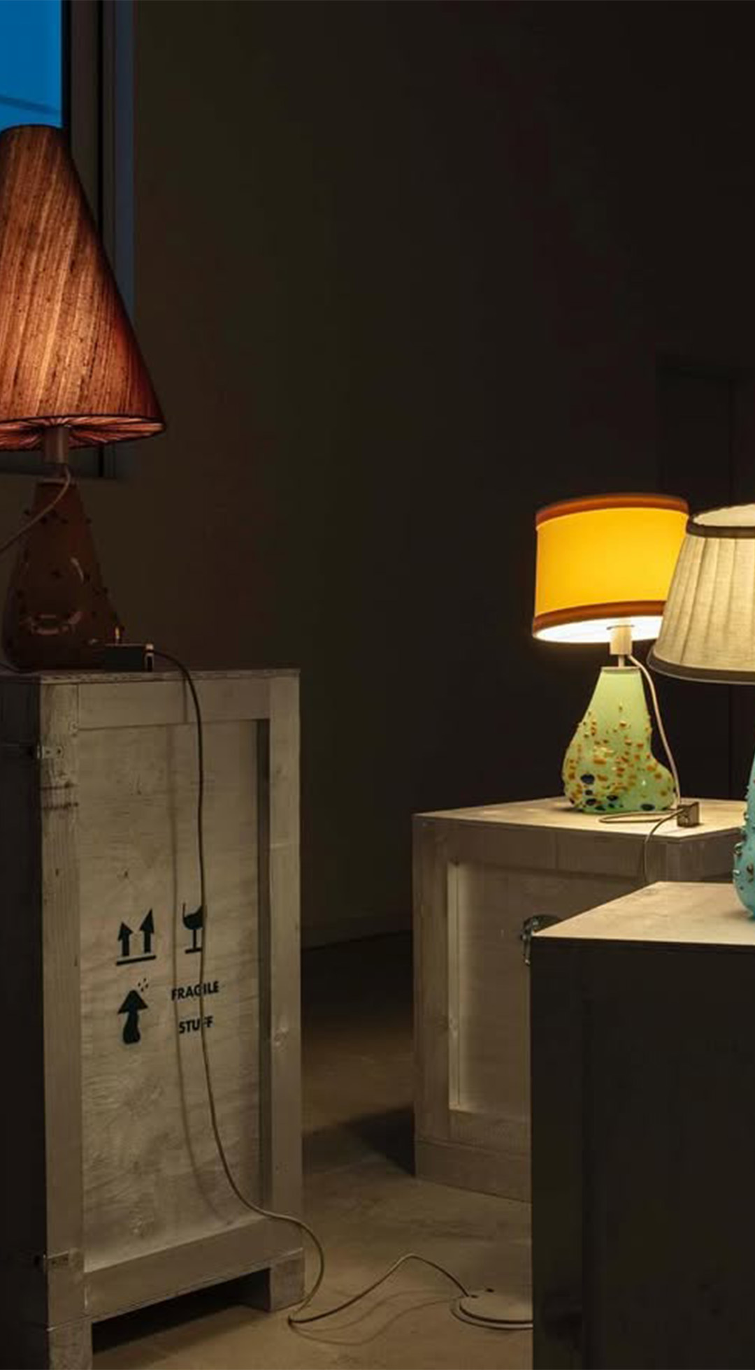Artist Katharina Ruhm and Tadan have collaborated on a series of nine sculptural objects that are recognisable to the beholder as what is commonly referred to as „lamp“. However, in the spirit of Saint Rufus the individual object here is in fact „not a ‚lamp‘, it is so much more than a ‚lamp‘“: Colours resembling mold creeping up on glass bodies to meet with the aseptic surface of stainless steel and the warm, textured fabric of wool or silk. A metamorphosis of the organic and the industrial, of the outside and the inside, chaos and per- fection. November, 2024.
